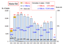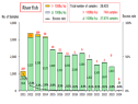 Q How is the concentration of radioactive cesium in river fish changing over time?