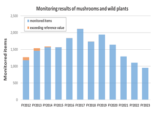 Q What is the current concentration of radioactive cesium in edible wild plants in Fukushima Prefecture?