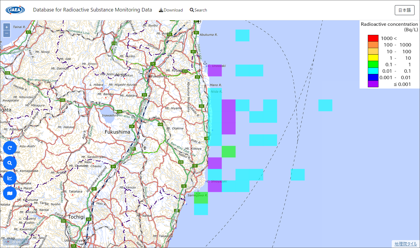 The Database for Radioactive Substance Monitoring Data is an open database site compiling the concentration of radioactive cesium in environmental samples in Fukushima Prefecture and the surrounding areas, that in food, and air dose rates monitored by the Japanese government, municipalities, Tokyo Electric Power Company, and research institutions.