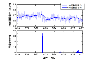1m空間線量率・雨量(期間: 2014年8月20日~8月26日) -