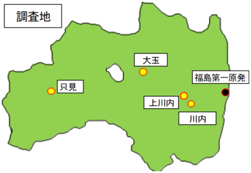 | 調査地名 | 主要樹種 | 福島第一原発からの距離 |