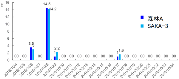 流出入状況の観測は主に降雨期の4~11月期に実施しており、降雨量、リターフォール量、樹幹流量、表面流量及び土壌移動量の観測とともに、水や土壌試料を採取し、放射性セシウム濃度の分析等を実施している。