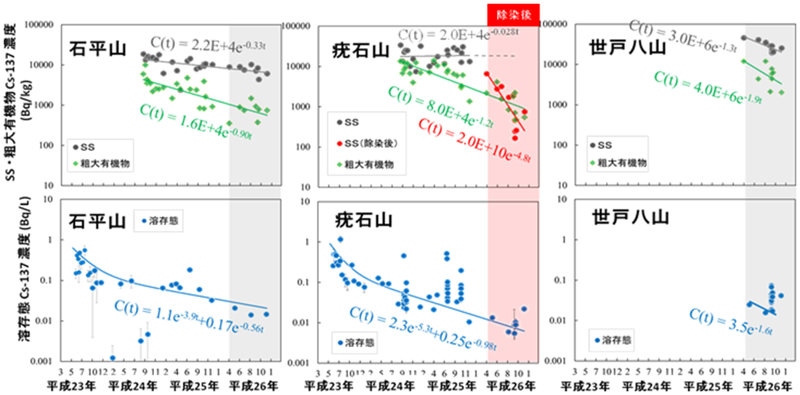並びに溶存態の放射性セシウム濃度(下段)の時間変化 (原子力機構 2015))