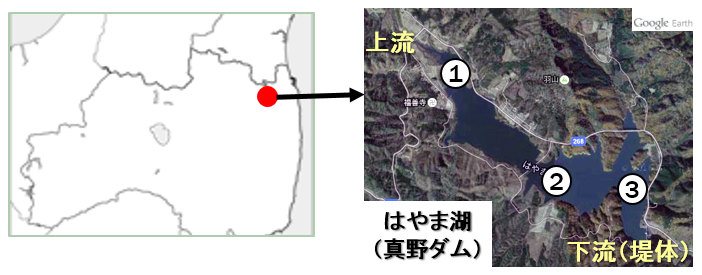図1 真野ダム(はやま湖)の調査地点