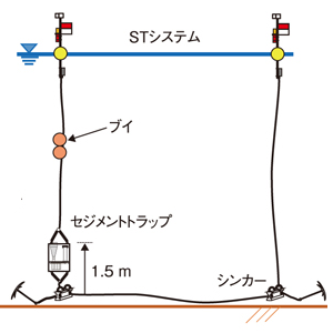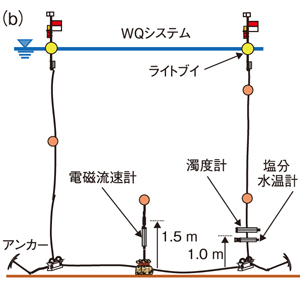 (b)2017年から2018年にかけて観測を実施しました。WQシステムは約1年間の連続測定を実施し、STシステムは55日間設置して沈降粒子量を測定しました。
