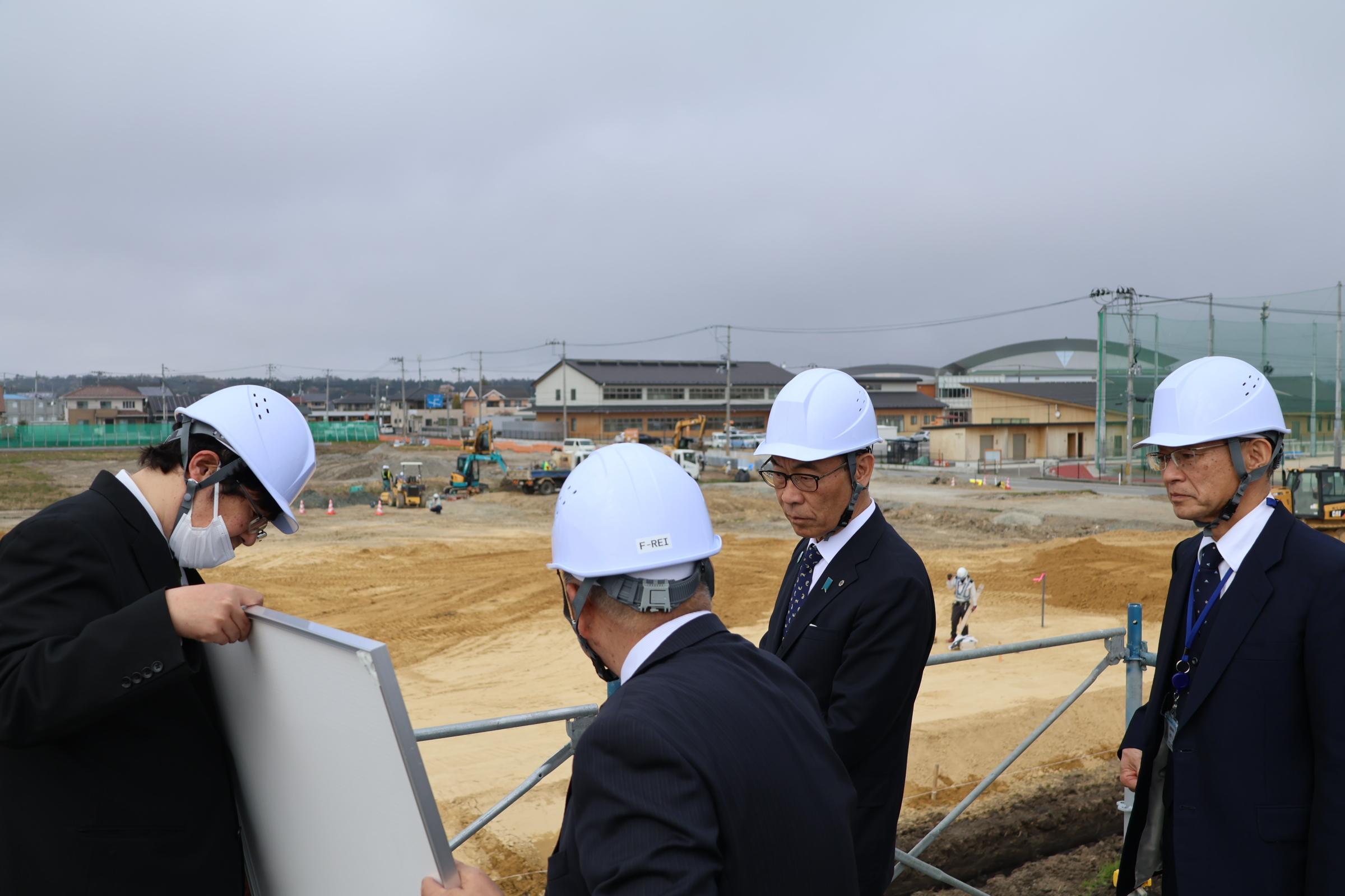 山崎理事長から、F-REIの現状や取組について説明を行い、意見交換を実施したほか、建設予定地をご視察いただきました。